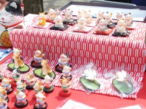 お馴染み丼ねこストラップと、丼招きちゃん達。