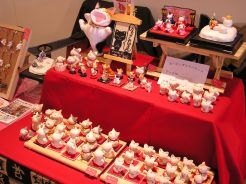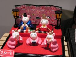 ![]() 丼ひな5にゃん飾りと、ねこ丼屋の看板ネコさん。 |
