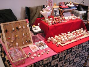 ![]() イベント会場風景。 ねこ丼屋のお隣はセンスの良いシルバーアクセサリー「アトリエKAZU」さんのお店(中) 斜め前に出店されていた「なると屋」さん(右) ![]() 「ひめ&ゆーすけ」さん(左)、「ねこ、まんま」さん(中)、「萩工房」さん(右) ネコつながりのお友達アーティストさんのブース。 |