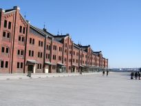 ![]() 横浜赤レンガ倉庫の外観。 赤レンガ倉庫の向こうには海。観光地としても人気の高いところです。 |