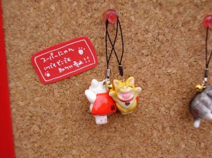 ![]() いつもの焼き物招き猫さんと、一応(=^m^=)新作も登場の丼ねこストラップ。 |