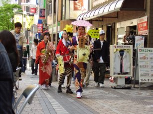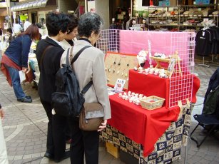 | 華やかなチンドン屋さんも練り歩き、とても賑やかな八王子の商店街でした。沢山のお客さんにも来て頂きました。ありがとうございました。2日目には突然ヒョウが降るというお天気でしたが、沢山のお客さん、アーティストさんともお話が出来て、とても楽しい2日間でした。 | |