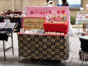 ![]() 今回のねこ丼屋ブース。ねこ丼屋看板垂れ幕作ってみました。 |