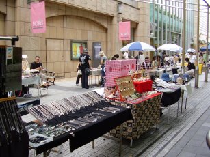 | 毎月1回開催されている府中アートマートに初参加。府中で開催されてから1年あまりですが、毎月楽しみにしているお客さんもいらっしゃるようです。真夏の開催ということで「すっごく暑いだろうなぁ〜(^^ゞ」と覚悟していたのですが、以外にも当日は5月上旬の涼しさ。曇り空ではありましたが雨が降ることもなく、参加側もお客さんにとっても過ごしやすい1日だったと思います。 | |