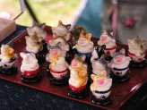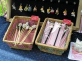 ![]() ![]() まぁ〜、ねこさん達はいつもと変わらないのですが(^^ゞ ストラップには新作があります。それと、耳かきも新しく登場しました。耳かきの横は夏のお祭りシーズン用丼ねこかんざし。これで、ねこさん柄の浴衣を着たら、も〜完璧(*^^)v |