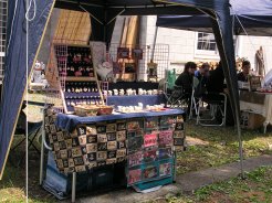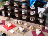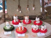 ![]() お向かいは、みのむしさんこと服部京子さんのブース。1日目の強風で場所を移動(>_<)ゞこちらはお引っ越し後。かわいいねこさん達が所狭しと並んでいました。 |
