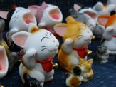 西放射線ユーロードのちょうど真ん中くらいのブースNo89でした。今回の新作は小判に乗った足上げの丼ねこさんと、スコちゃんのストラップ。 |
