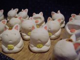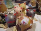 ![]() ![]() −ねこ丼お気に入りのお店− かおりさんのお店「nekokan」さん。猫モチーフの陶器と小物のお店。 回を増すごとに見事になって行くねこさん陶器たち(*^^)v ![]() 「猫丸&カメランド」さん。ねこ丼大好きねこさんとカメさんのダブルショップ。 今回はねこさんイラストのバックが目を引きました。 ![]() 「陶房のら」さんと、手作り動物マラカスの小川ゆうこさんのダブルショップ 小さいねこさんたちもちゃ〜んとマラカスなんです。シャカシャカ ![]() 優しい木の温もりいっぱいの「あとりえがようし」鈴木謙太郎さんのお店。 ねこさんだけでなく絵本から飛び出したようなキャラクター達が並んでいました。 ![]() |