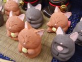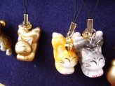 新作はストラップの「にゃちほこ」ちゃんと、焼き物のねこさん。 |