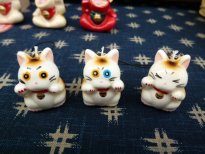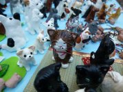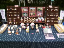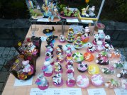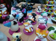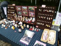 −今回のねこ丼屋ブース− たくさん持っていったつもりだったのに、みなさんから「何か少ないぢゃん」と言われてしまったレイアウト。う〜ん、こうして見てみると、確かに寂しい感じ。。。何とかしたい。。(^^ゞ ![]() 新作は「ねこ丼屋」にしてはノーマルな招き猫さんのストラップ。 いろいろなお顔で遊んでみました。真ん中の子は金目銀目さん。。。ですが、 「殴られたあとみたいだね。」(≧∇≦) ![]() −ねこ丼屋お気に入りブース− ![]() 犬モチーフの粘土置物「わんこISLAND」さん。猫さんやうさぎさんもいました。 ![]() 猫専門粘土造形「花ねこ」さん。三茶初参加。いつ見ても楽しいねこさんたち。 年に1回の大きなイベントでみんな楽しみにしている三茶アート楽市ですが、何故か毎年お天気に悩まされますね。2011年のアート楽市1日目は雨風の荒天となり、とうとう中止になってしまいました(>_<)ゞ残念。2日目は何とかお天気回復。お昼過ぎからは沢山のお客さんで賑わいましたが、実質半日って感じだったかな。う〜ん、前日までは良いお天気だったのに。。。まぁ、短い時間でしたが、今年も楽しませて頂きました。ねこ丼屋に立ち寄って下さったみなさん、丼ねこを連れ帰って下さったお客様、気軽にお話してくれた出店者さんたち、主催者さん、スタッフさん、ありがとうございました。 ![]() |