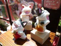 −ねこ丼屋お隣さんブース− ![]() 井の頭の愉快な仲間たちつながり(なぜ他のイベントまでお隣?(=^m^=))手作りアクセサリーMargarets hopeさん(写真左) 小さなお地蔵さんが大人気(接写写真忘れました。すみません〜)とのやま石芸さん(写真右)サーファー地蔵かわいかった。 |